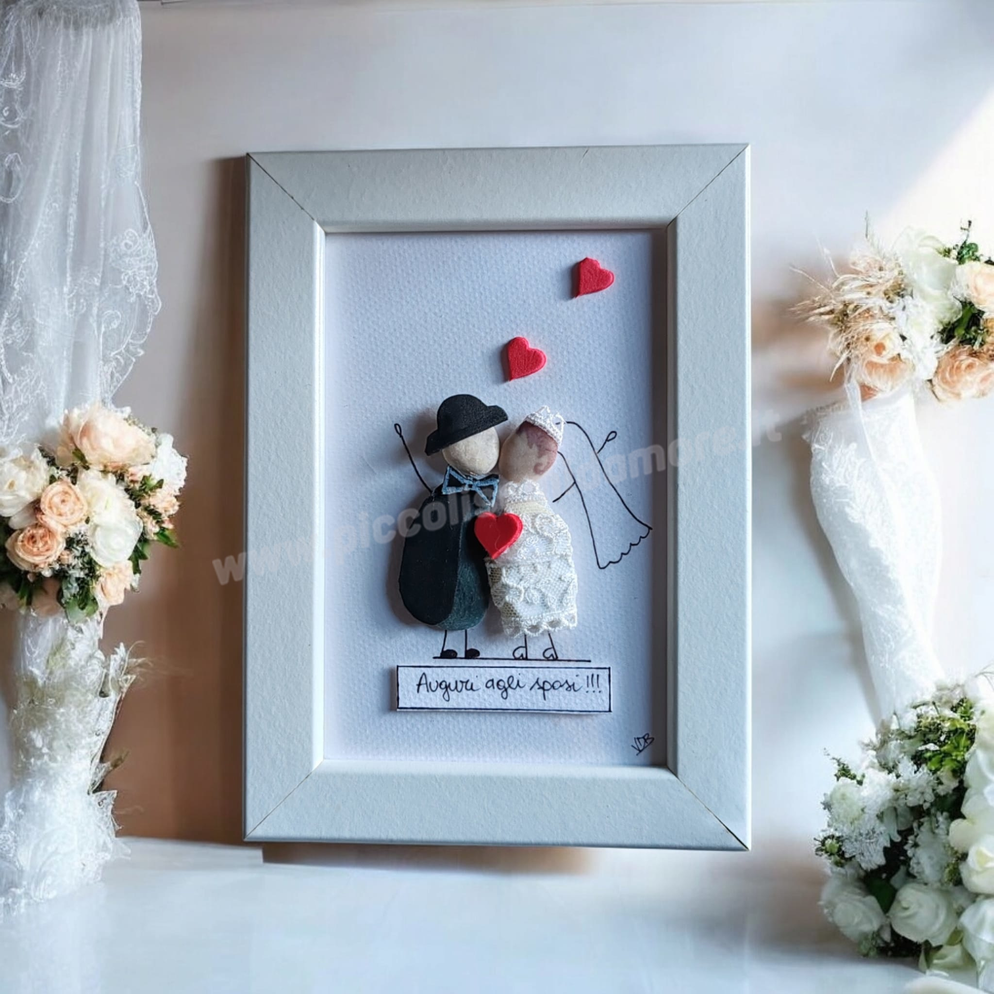 • La dimensione standard della cornice è di 10×15 cm, il colore della cornice è il bianco ma sono disponibili su richiesta anche i colori nero, rosa, celeste.