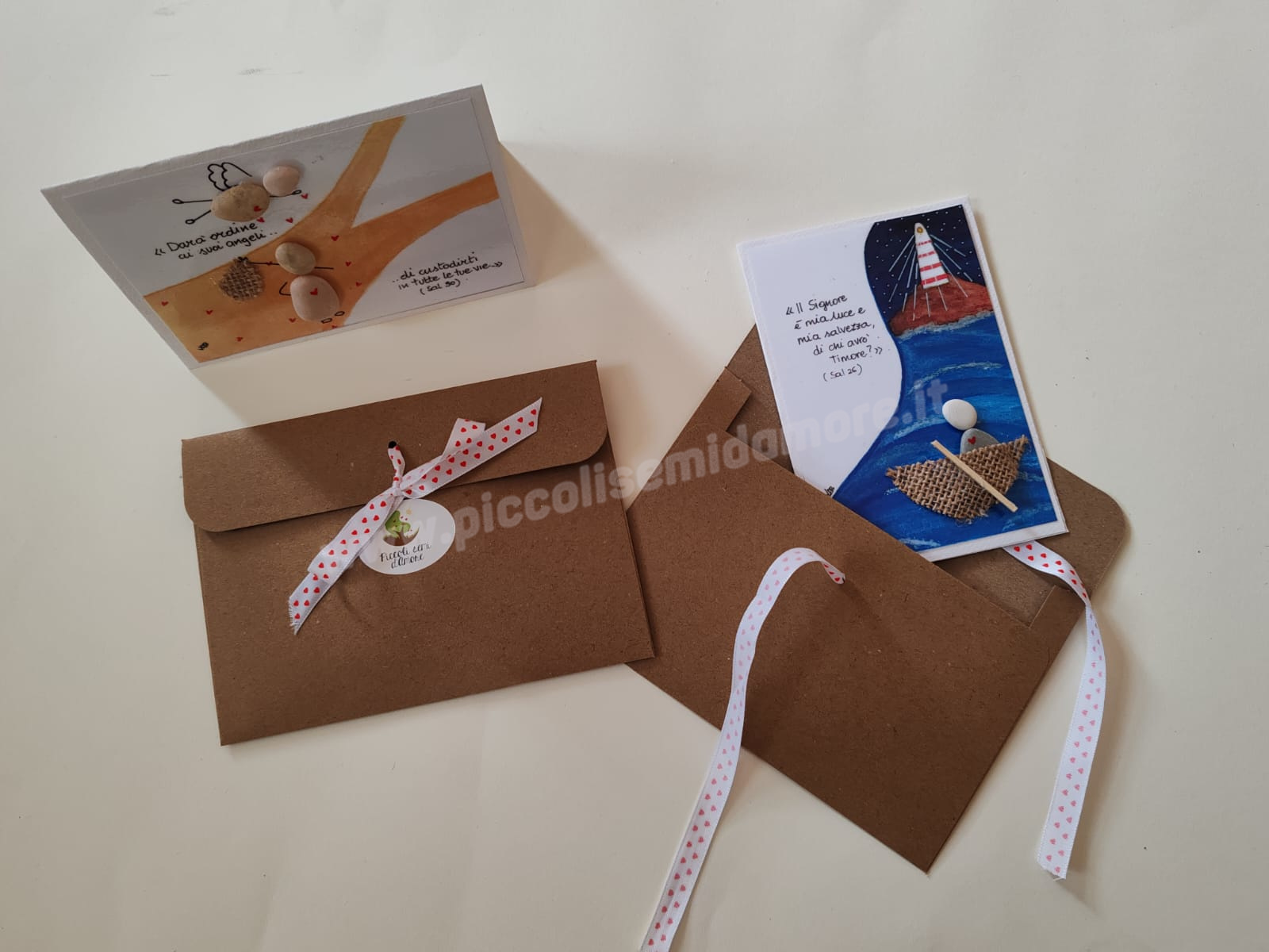 Sono dotati di busta porta-biglietti per il confezionamento, con adesivo Piccoli semi d’Amore.