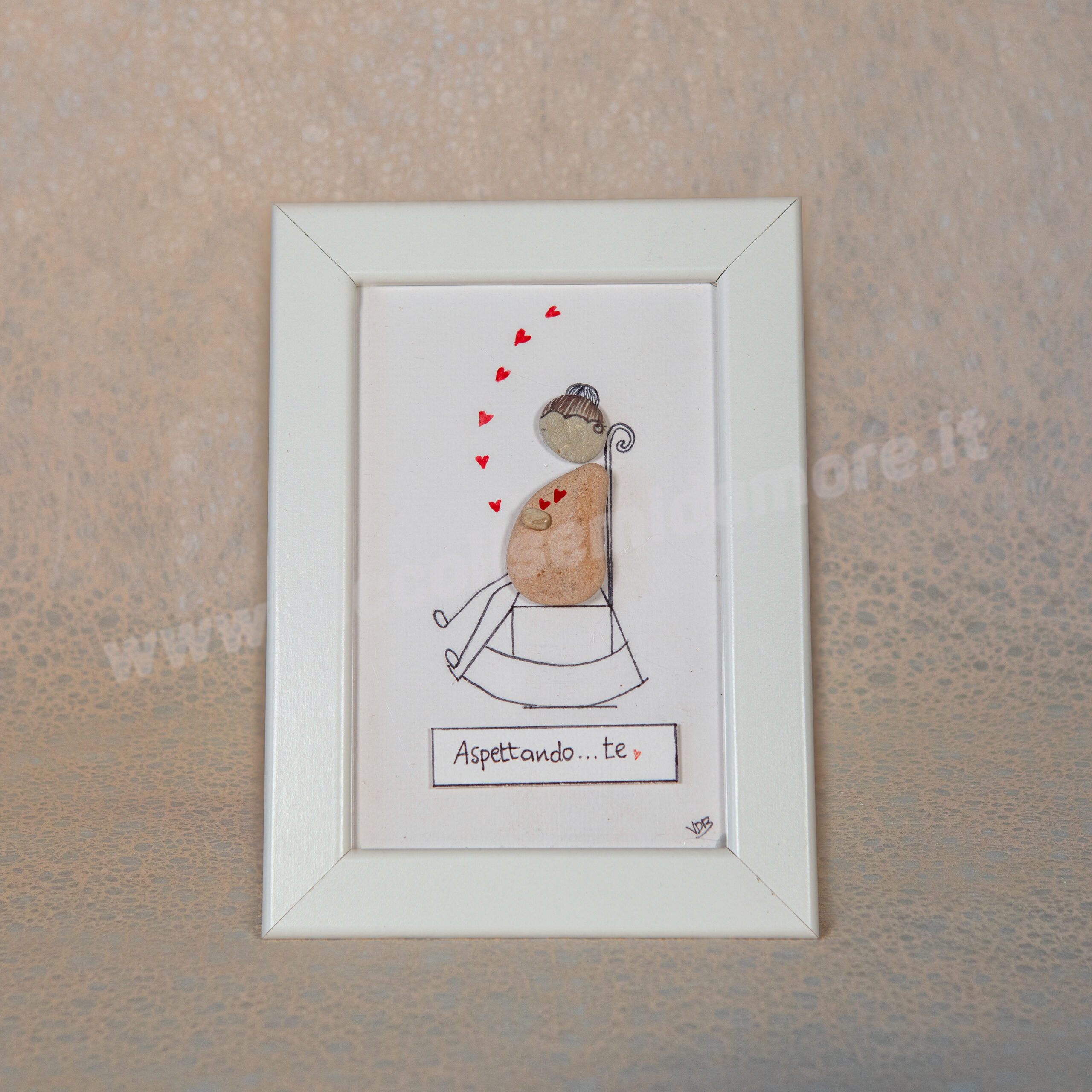 Formato standard 10×15, cornice bianca (materiale plastica). Soggetto su cartoncino acquarellabile gr 250 con possibilità di scrittura al suo interno. Rivestimento esterno del biglietto in plexiglass. Eventuali formati più grandi da concordare con costo aggiuntivo. Per la particolarità ed unicità dei sassi utilizzati, ogni pezzo differisce in piccoli particolari dagli altri e dal prototipo mostrato in foto. Questo rende unico e irripetibile ogni articolo.