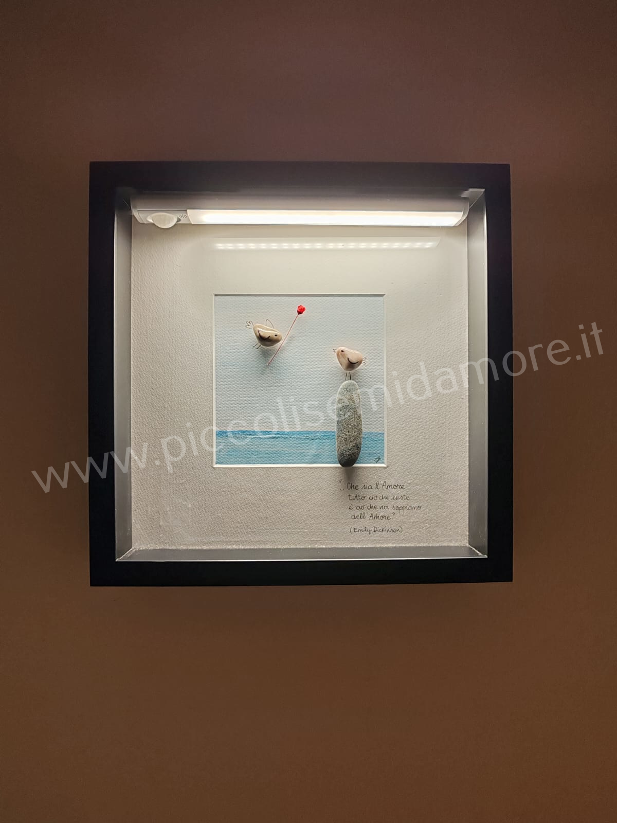 I quadri illuminati e le lampade, ultimi nati della linea “Anche i sassi parlano” sono pensati come oggetti speciali per festeggiare o ricordare momenti significativi della propria vita o di quella dei nostri cari (matrimoni, anniversari, sacramenti) o come complementi d’arredo unici da acquistare per la propria casa o da regalare.