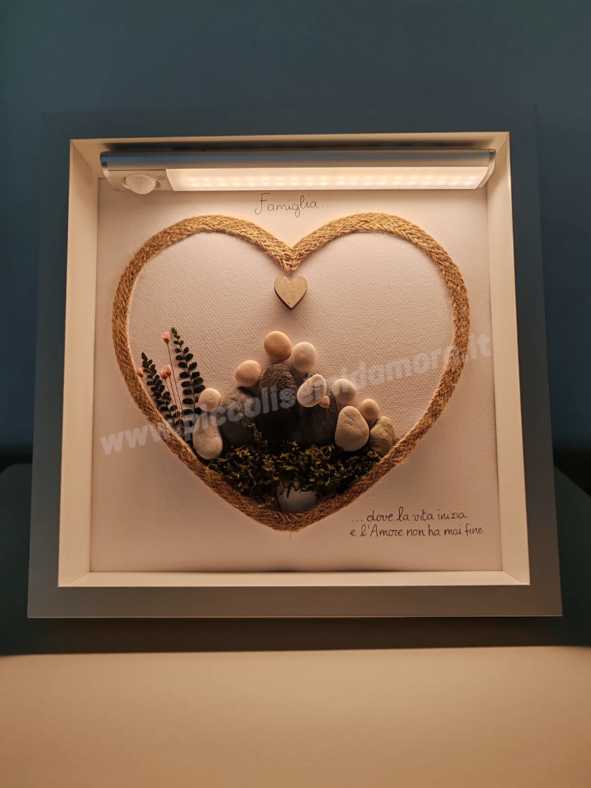 I quadri illuminati e le lampade, ultimi nati della linea “Anche i sassi parlano” sono pensati come oggetti speciali per festeggiare o ricordare momenti significativi della propria vita o di quella dei nostri cari (matrimoni, anniversari, sacramenti) o come complementi d’arredo unici da acquistare per la propria casa o da regalare.