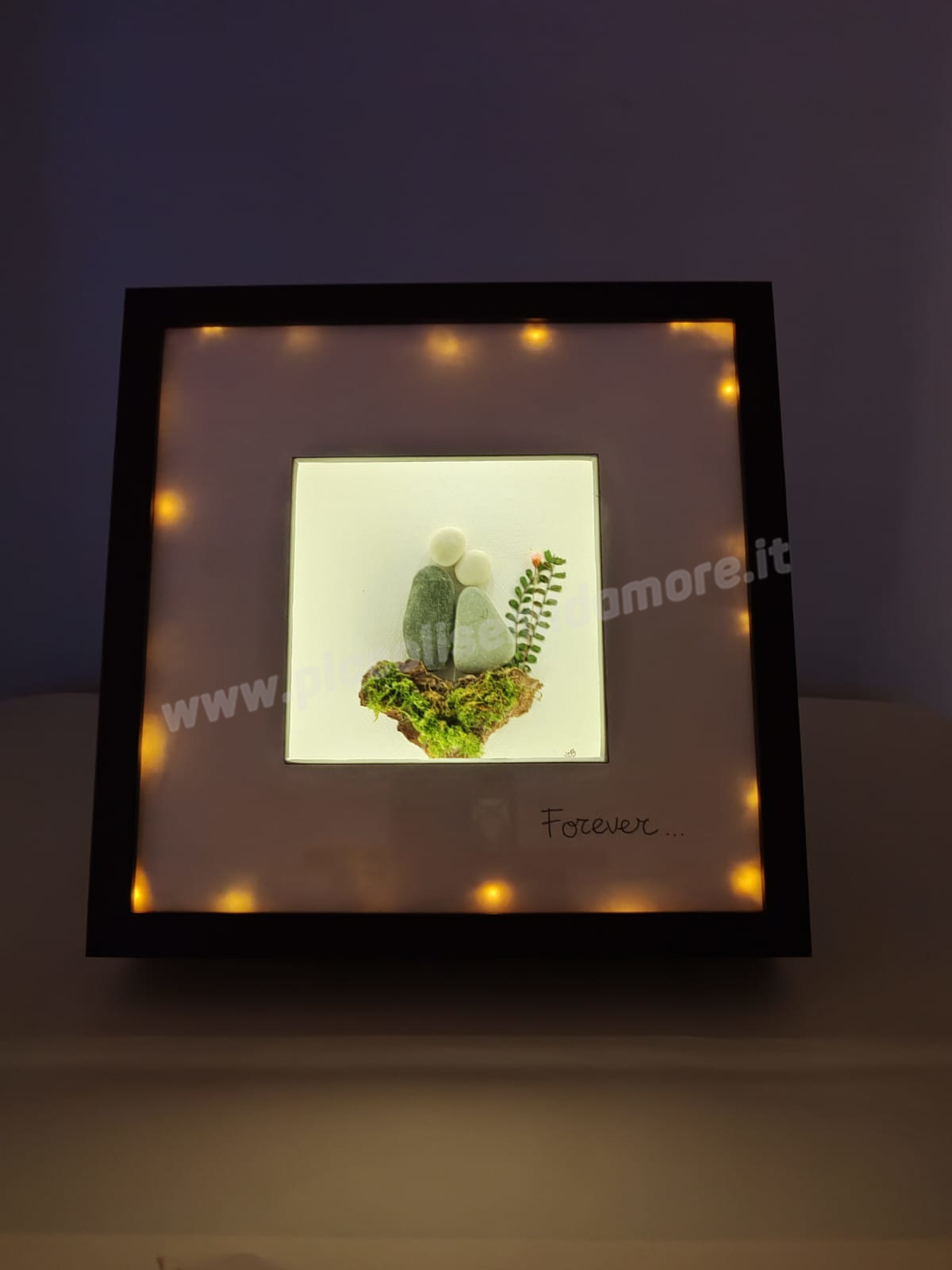 I quadri illuminati e le lampade, ultimi nati della linea “Anche i sassi parlano” sono pensati come oggetti speciali per festeggiare o ricordare momenti significativi della propria vita o di quella dei nostri cari (matrimoni, anniversari, sacramenti) o come complementi d’arredo unici da acquistare per la propria casa o da regalare.