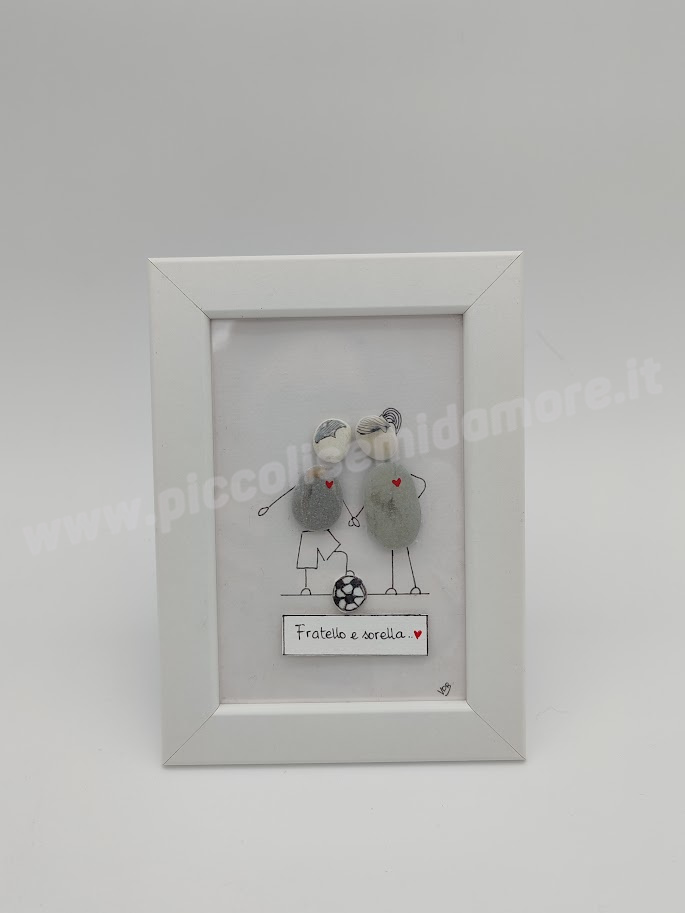 Formato standard 10×15, cornice bianca (materiale plastica). Soggetto su cartoncino acquarellabile gr 250 con possibilità di scrittura al suo interno. Rivestimento esterno del biglietto in plexiglass. Eventuali formati più grandi da concordare con costo aggiuntivo. Per la particolarità ed unicità dei sassi utilizzati, ogni pezzo differisce in piccoli particolari dagli altri e dal prototipo mostrato in foto. Questo rende unico e irripetibile ogni articolo.