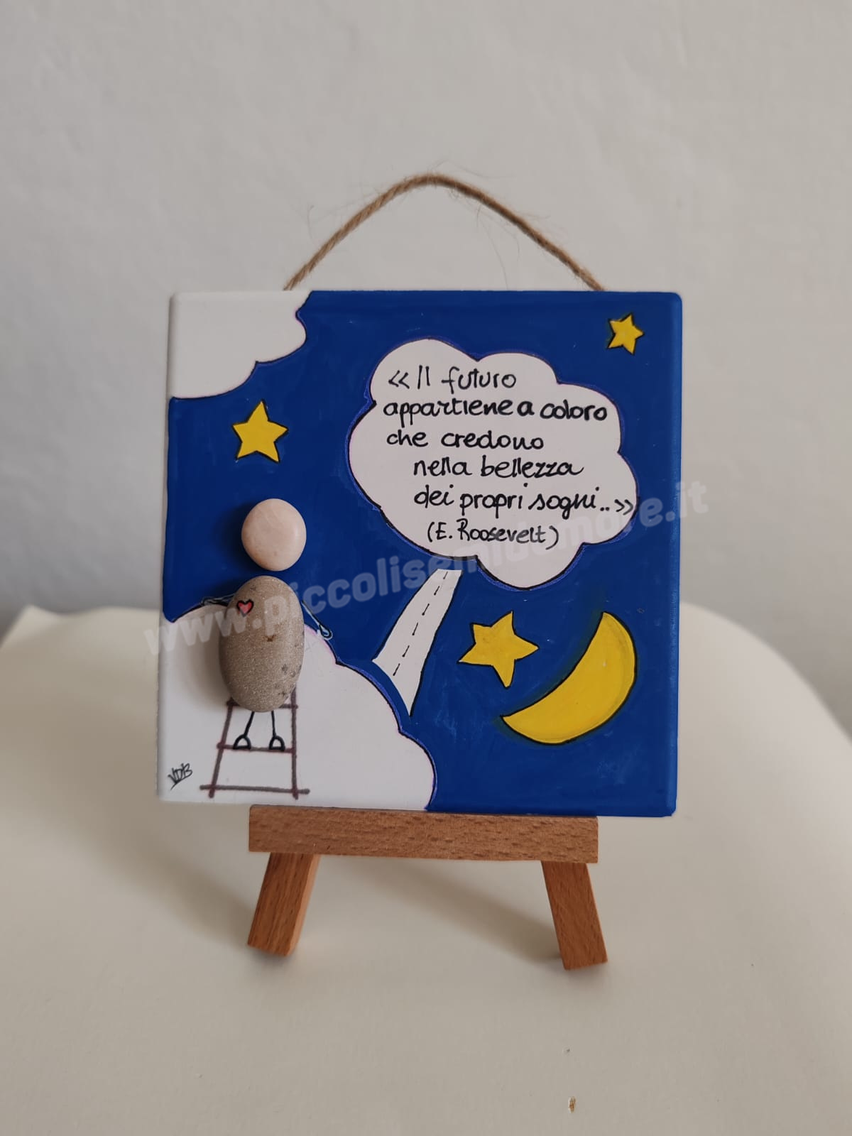 I nuovi nati della linea “Anche i sassi parlano” sono quadretti di piccolo formato, perfetti come piccole idee regalo, souveniers, bomboniere o elementi d’arredo.