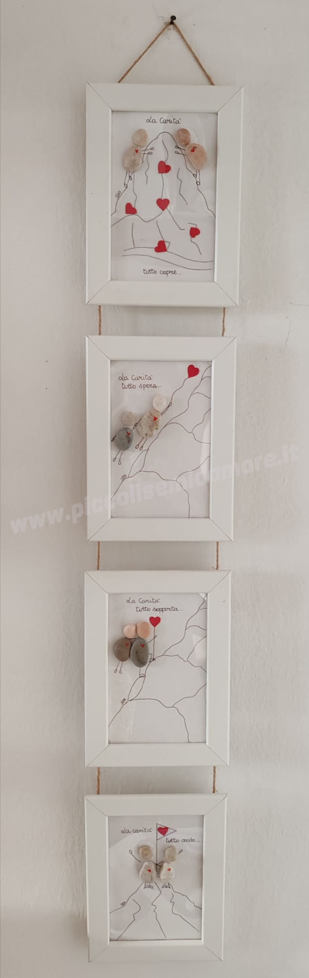 I set pluri-quadretti da parete, nascono come come complementi d’arredo unici da acquistare per la propria casa o da regalare, incentrati in particolare sui temi “amore” e “famiglia”.