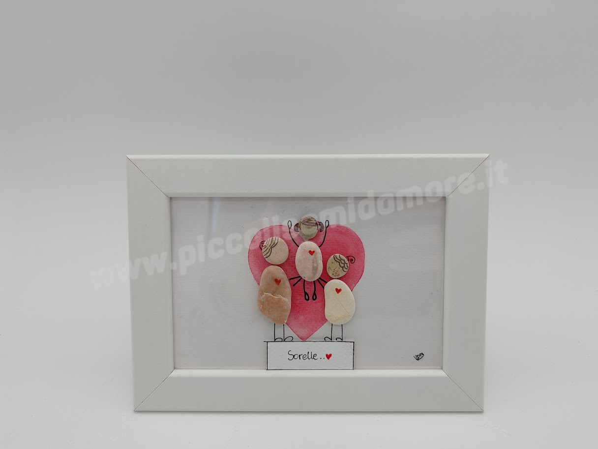 Formato standard 10×15, cornice bianca (materiale plastica). Soggetto su cartoncino acquarellabile gr 250 con possibilità di scrittura al suo interno. Rivestimento esterno del biglietto in plexiglass. Eventuali formati più grandi da concordare con costo aggiuntivo. Per la particolarità ed unicità dei sassi utilizzati, ogni pezzo differisce in piccoli particolari dagli altri e dal prototipo mostrato in foto. Questo rende unico e irripetibile ogni articolo.