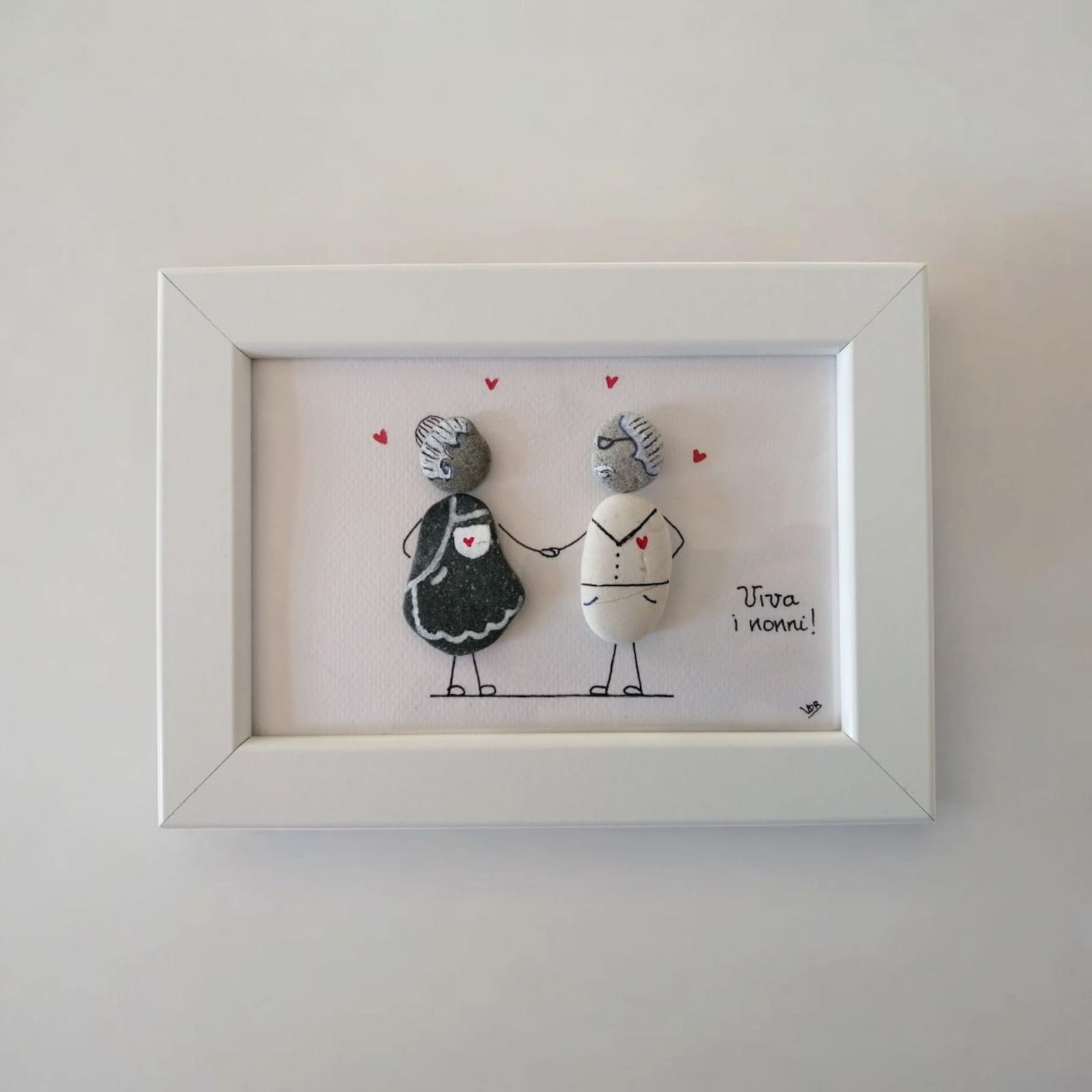 Formato standard 10×15, cornice bianca (materiale plastica). Soggetto su cartoncino acquarellabile gr 250 con possibilità di scrittura al suo interno. Rivestimento esterno del biglietto in plexiglass. Eventuali formati più grandi da concordare con costo aggiuntivo. Per la particolarità ed unicità dei sassi utilizzati, ogni pezzo differisce in piccoli particolari dagli altri e dal prototipo mostrato in foto. Questo rende unico e irripetibile ogni articolo.